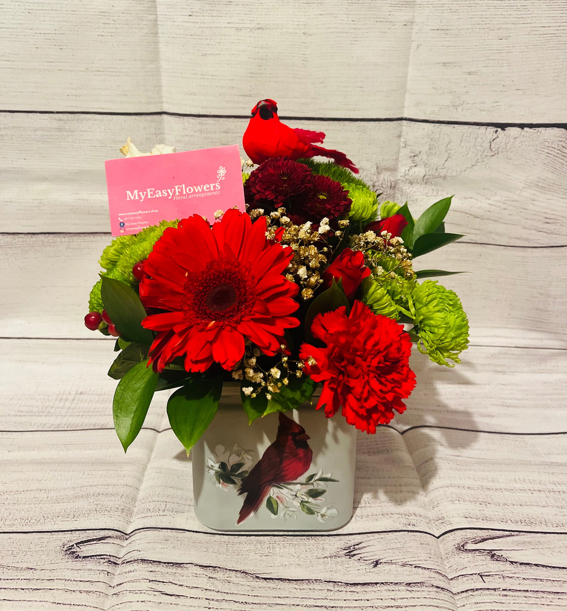 Christmas Designer choice in cardinal vase.- Best Seller